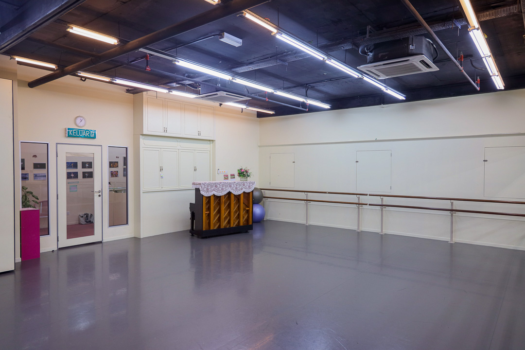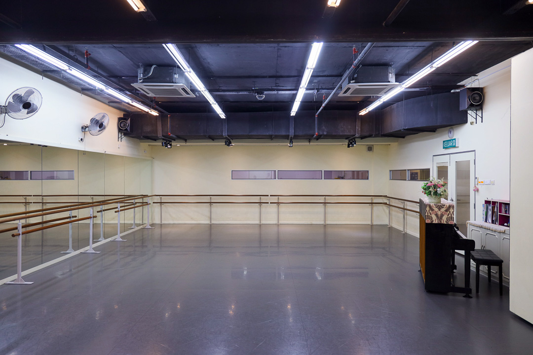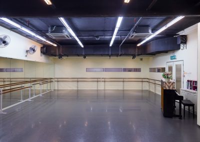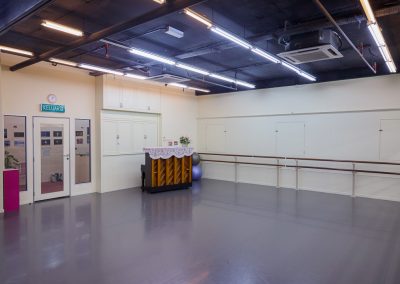 In our G Village location, we have two spacious studios which can expand into a single space stretching over 1400 sq ft for bigger classes and performance rehearsals. Both studios are accompanied with pianos as well as a marley floor imported from Japan to ensure sustainability and longevity in long term dance training. The marley floor is accepted worldwide by institutions such as the American Ballet Theatre and the Royal Academy of Dance who consider it the best surface for recreational and professional dance. All our studios are equipped with a sprung floor which is a dance floor that rests on a system of padding to absorb the shock of jumping. Our flooring reduces the risk of injuries and the combination of its high durometer neoprene pads and basket weaving woods makes the surface easier on bones and joints, especially for developing children.